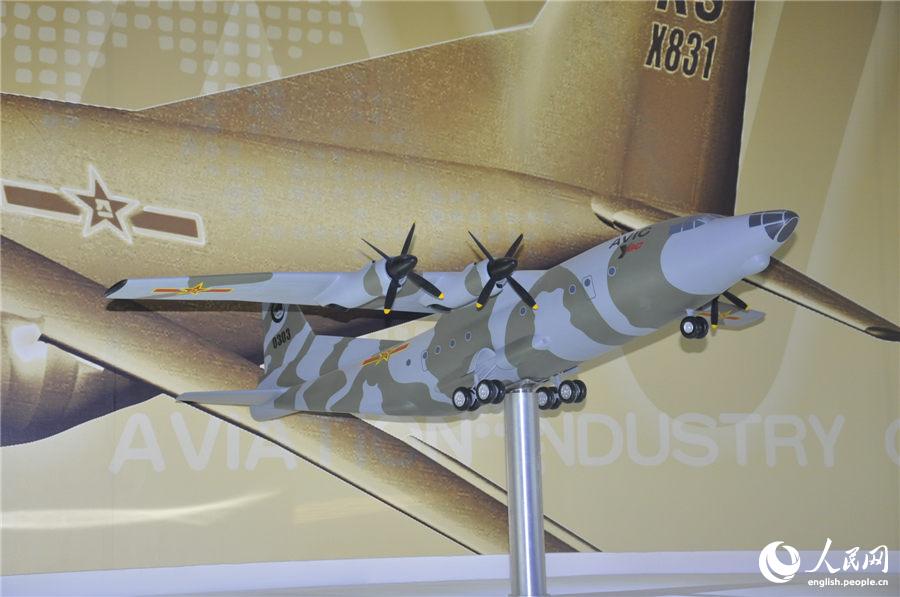 Model of the Y-8C aircraft displayed at the 10th China International Aviation & Aerospace Exhibition (Airshow China 2014) scheduled from Nov. 11 to 16 in Zhuhai, south China’s Guangdong province. (People’s Daily Online/Sun Zhao)