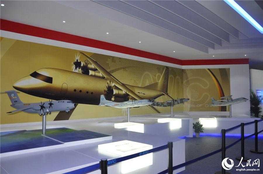 Models of military transport aircraft displayed by AVIC at the 10th China International Aviation & Aerospace Exhibition (Airshow China 2014) scheduled from Nov. 11 to 16 in Zhuhai, south China’s Guangdong province. (People’s Daily Online/Sun Zhao)
