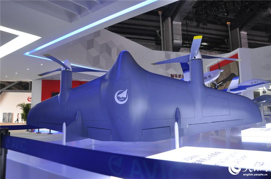Model of the VD200 Vertical Taking-off and Landing UAV System displayed at the 10th China International Aviation & Aerospace Exhibition (Airshow China 2014) scheduled from Nov. 11 to 16 in Zhuhai, south China’s Guangdong province. (People’s Daily Online/Sun Zhao)