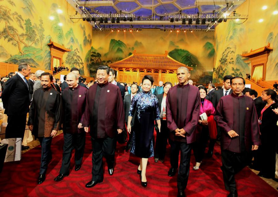 "Your suits and dresses are in Chinese style. This draw us closer. It will also appear to ordinary Chinese who see you (from TV and photos) that you come here just like calling on a neighbor or old friend," Xi told his guests at the banquet.