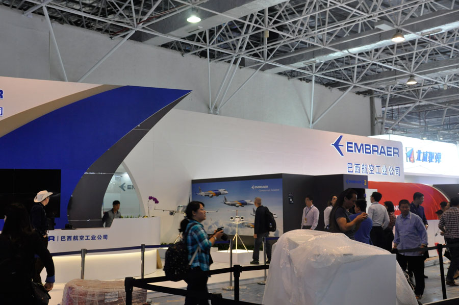 Photo taken on Nov. 10, 2014 shows exhibitors getting ready for the 10th China International Aviation & Aerospace Exhibition (Airshow China 2014) scheduled from Nov. 11 to 16 in Zhuhai, south China’s Guangdong province. (People’s Daily Online/ Sun Zhao)