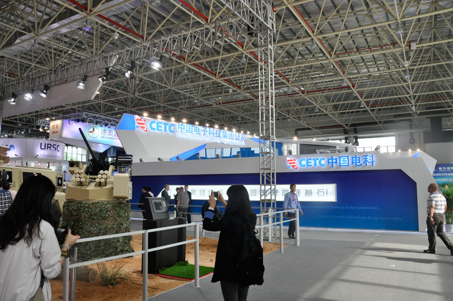 Photo taken on Nov. 10, 2014 shows exhibitors getting ready for the 10th China International Aviation & Aerospace Exhibition (Airshow China 2014) scheduled from Nov. 11 to 16 in Zhuhai, south China’s Guangdong province. (People’s Daily Online/ Sun Zhao)