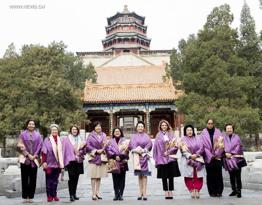 BEIJING, Nov. 11 -- Peng Liyuan, wife of Chinese President Xi Jinping, invited wives of APEC economies' leaders to a tour to the Summer Palace on Tuesday.