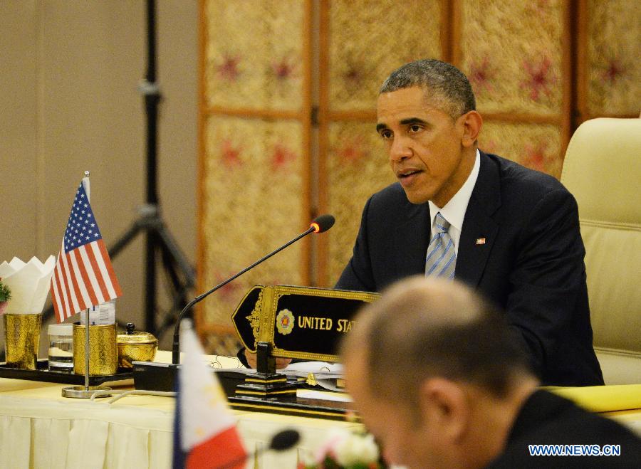 U.S. President Barack Obama speaks at the 2nd ASEAN-U.S. Summit in Nay Pyi Taw, Myanmar, on Nov. 13, 2014. The 2nd ASEAN-U.S. Summit was held here on Thursday. (Xinhua/Liu Yun)