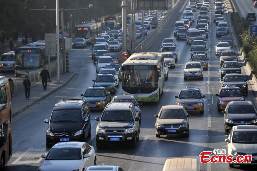 Drivers suffer from a bumper-to-bumper jam on a road in Beijing during the morning rush hours on November 13, 2014, the first day after the lifting of the city's even-odd license plate restrictions. Beijing municipality launched the odd-even license plate system to ease traffic on roads during the Asia-Pacific Economic Cooperation (APEC) Economic Leaders' Meeting. The traffic control system allowed cars to drive on alternating days based on odd or even license plate numbers from November 3 to 12, aiming to decrease total traffic by 35 percent. [Photo: Chinanews.com/ Jin Shuo]
