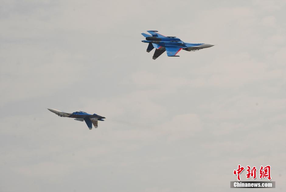 On Nov. 12, 2014, the Bayi Aerobatics Team of the Chinese Air Force, the Russian Knights Aerobatics Team and the United Arab Emirates’ National Aerobatic Team give splendid performances for guests from both home and abroad at the Airshow China 2014 in Zhuhai. (Chinanews/Chen Wen)