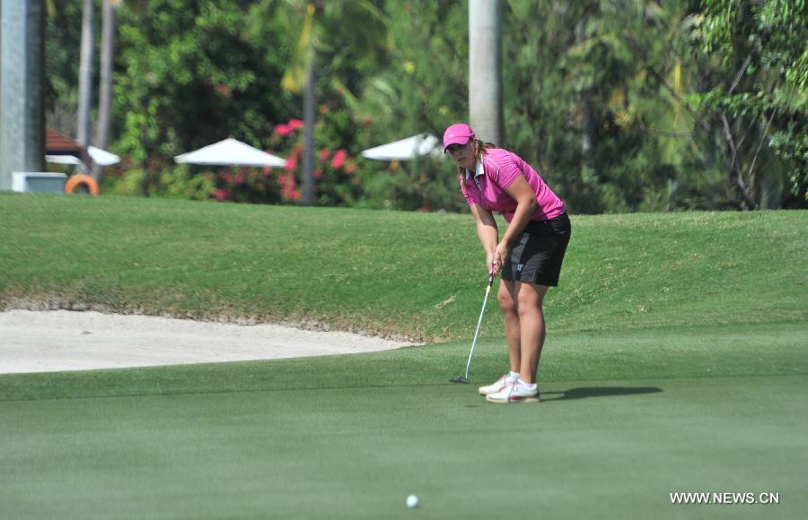 Liz Young of England competes in the 2014 Sanya Golf Ladies Open in Sanya, south China's Hainan Province, Nov. 14, 2014. A total of 120 players around the world participated in the match. (Xinhua/Yang Guanyu)