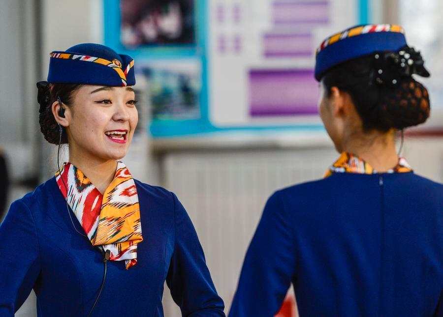 Stewardesses for first high-speed railway in Xinjiang (4)
