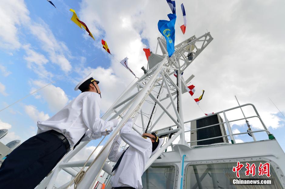 On Nov. 6, 2014, Haixun 1103, the first large patrol ship of the Sanya Maritime Safety Administration, was officially commissioned. The ship is 64 meters long, 10 meters wide, with 830 tons of displacement and 1,800 sea miles of cruising ability. The well-equipped ship is capable of conducting air and sea cruise under various weather conditions. (Chinanews/Luo Yunfei)