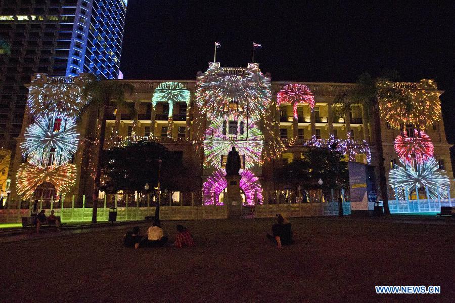 | Photo taken on Nov. 14, 2014 shows a light show in Brisbane, Australia. The G20 Summit is to be held in Brisbane on Nov. 15 to Nov. 16. (Xinhua/Jin Linpeng) |