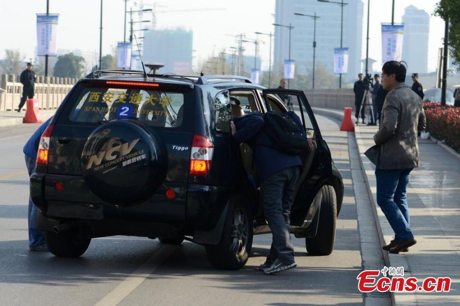 Photo taken on November 15, 2014 shows self-driving cars in an unmanned vehicle contest in Changshu of Jiangsu province. Altogether 22 cars from China’s universities and research institutions will compete with each other in the Future Challenge 2014 contest, which started on Saturday. [Photo/ Wang Sizhe]