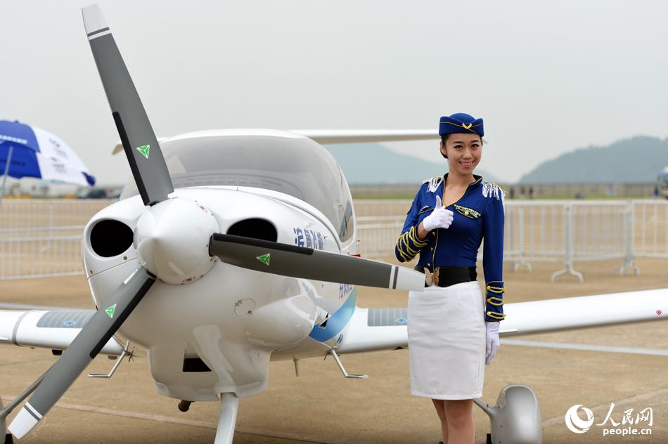 Stewardesses perform an uniform show at the Airshow China, Nov. 13, 2014. (People's Daily Online/Weng Qiyu)