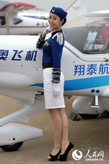 Stewardesses perform an uniform show at the Airshow China, Nov. 13, 2014. (People's Daily Online/Weng Qiyu)