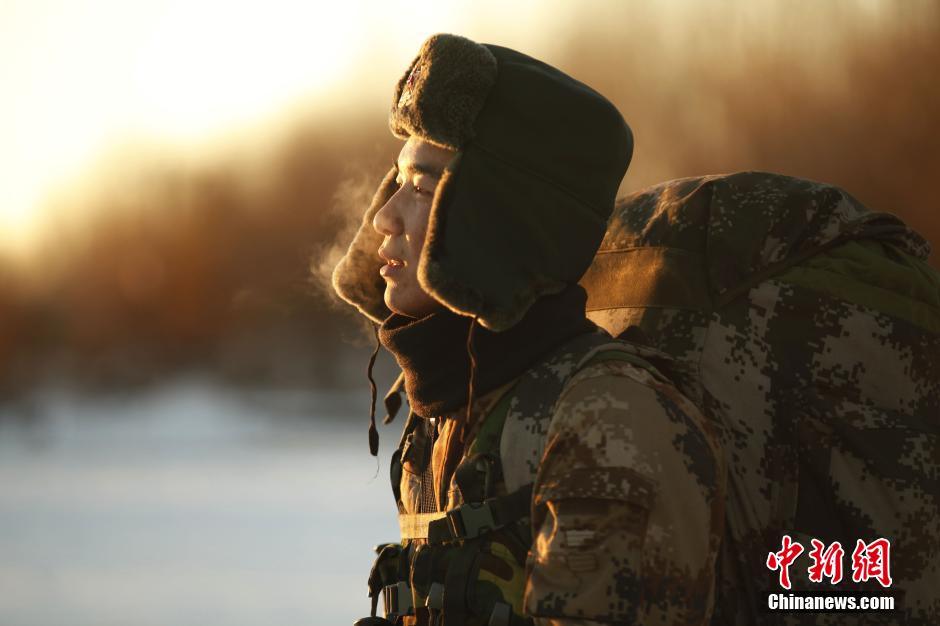 Soldiers from border defense regiments of Shenyang military region have skiing exercise braving minus 20 degree temperature. (CNS/Wei Jianshun)