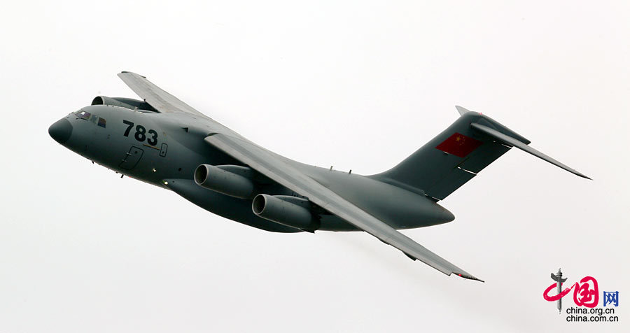 China’s self-developed heavy-duty military transport aircraft Y-20 performs aerobatics at the 2014 Zhuhai Airshow. (Photo/China.org.cn)