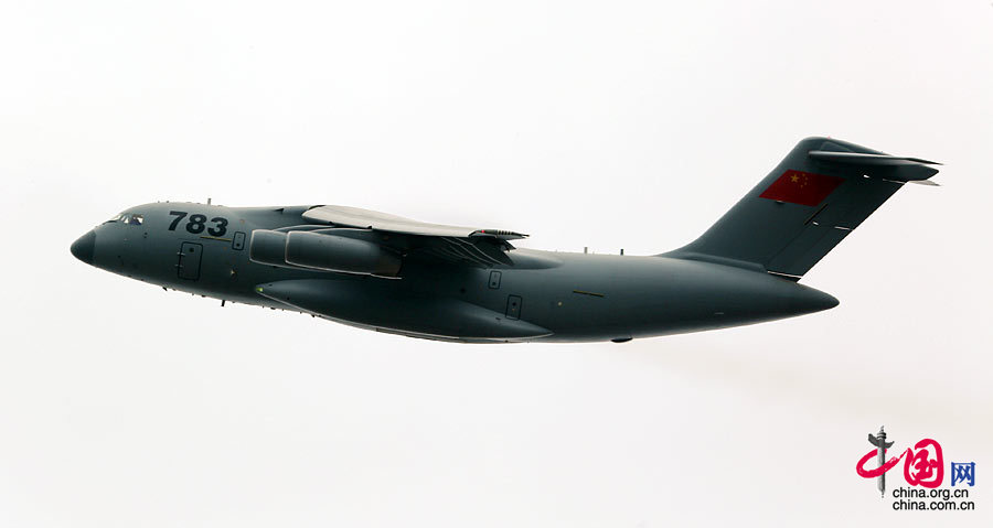 China’s self-developed heavy-duty military transport aircraft Y-20 performs aerobatics at the 2014 Zhuhai Airshow. (Photo/China.org.cn)