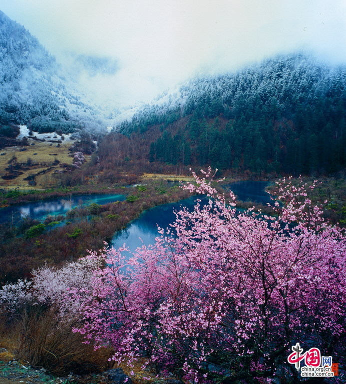 Scenic Jiuzhaigou, tucked away in the depth of the mountains in northern Sichuan Province is indeed one of nature's most extravagant splendors anywhere in the world and is the crowning glory of the province. With many lakes, waterfalls and a rich variety of endangered plants and species of animals, it was recognized as a UNESCO World Heritage Site in 1992. (Source: China.org.cn)