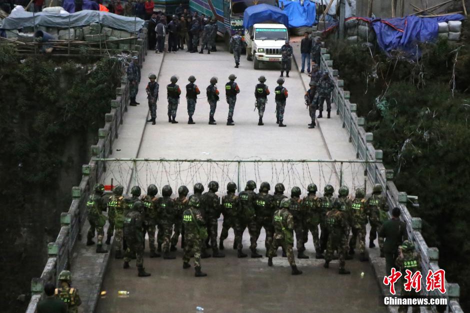 On Nov. 16, 2014, the frontier police force in Tibet and the armed police and fire department of Nepal conduct a joint exercise at the Sino-Nepal Friendship Bridge. The exercise focused on dealing with emergency situations such as attacks at the checkpoints. The joint exercise effectively improved the cooperation ability between the armed police of the two countries. (Chinanews/Zheng Yongbo)