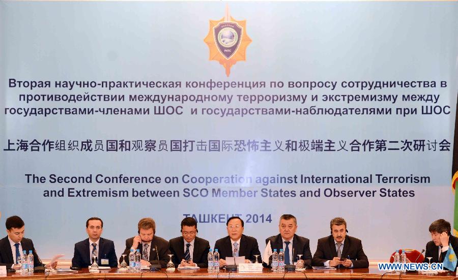 Zhang Xinfeng (C), director of the Executive Committee of SCO's Regional Anti-Terrorism Agency, attends the Second Conference on Cooperation against International Terrorism and Extremism between SCO Member States and Observer States, in Tashkent, capital of Uzbekistan, on Nov. 18, 2014. (Xinhua/Sadat)