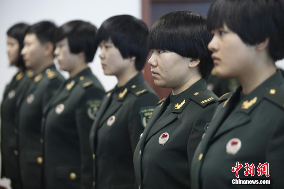 Female frontier soldiers of a frontier defense regiment under the Heilongjiang Provincial Military Command of the PLA, Nov. 3, 2014. (CNS/Wei Jianshun)
