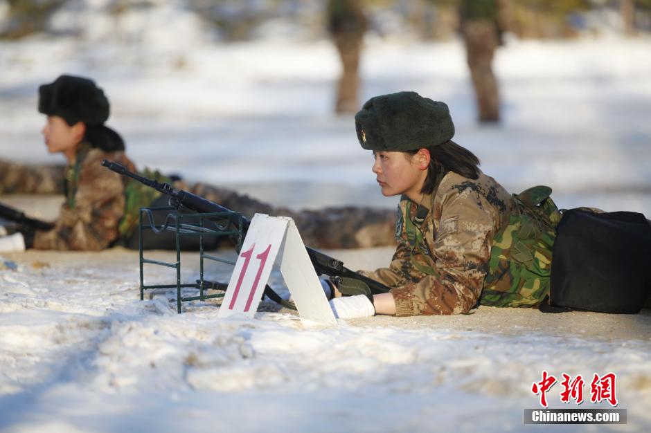Female frontier soldiers take training, Nov. 3, 2014. A frontier defense regiment under the Heilongjiang Provincial Military Command of the PLA has recruited its first group of post-90s female soldiers this year. (CNS/Wei Jianshun)