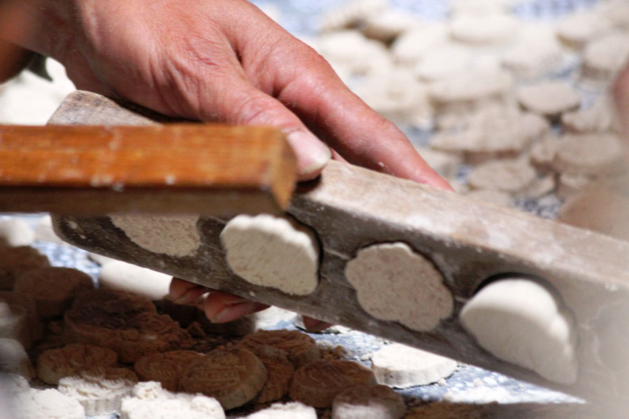 A local man makes traditional biscuits for the visitors in Wuyuan county, east China's Jiangxi province on Nov. 16, 2014. More than 40 reporters from foreign-language media in China will visit Jiangxi province until Nov. 20, 2014. (Photo/People’s Daily Online)