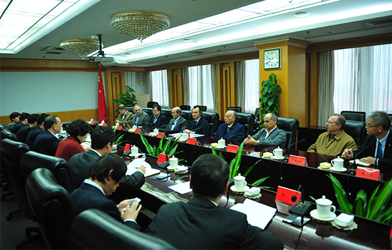 Yang Zhenwu, President of People's Daily, meets representatives from the Portuguese Press Association led by its President Palmero on Nov. 19, 2014. (Photo/He Meng)