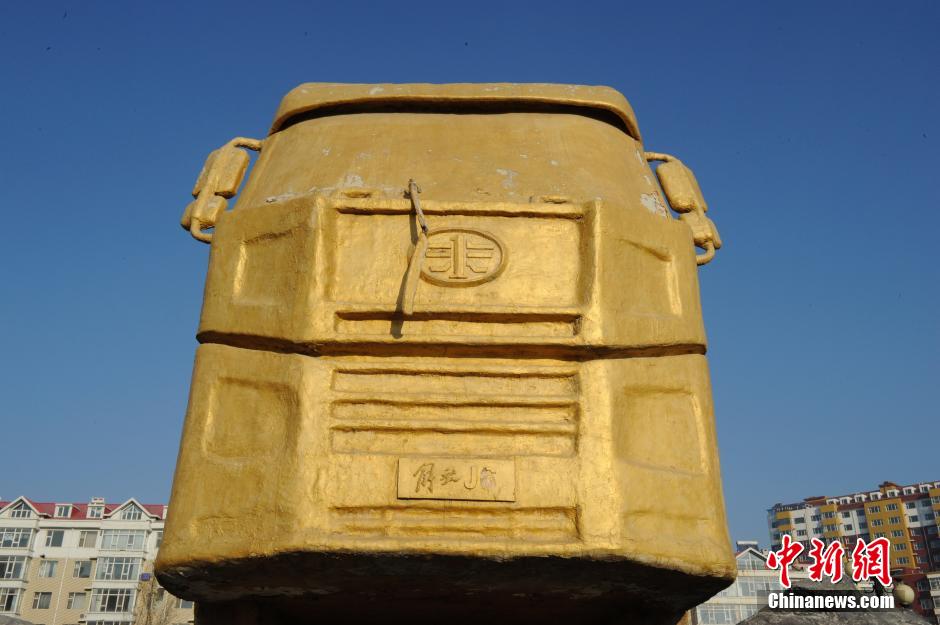 An automobile model, dyed with luxurious gold color, was displayed at a community in Changchun, capital of northeast China's Jilin Province, on Nov. 18, 2014. (Source: Xinhuanet.com/ Chinanews.com)