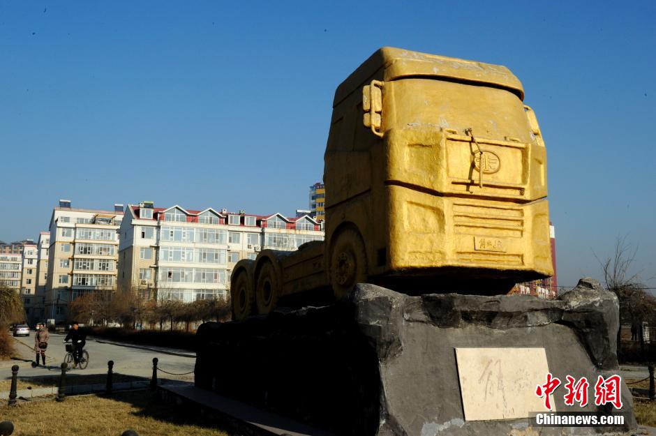 An automobile model, dyed with luxurious gold color, was displayed at a community in Changchun, capital of northeast China's Jilin Province, on Nov. 18, 2014. (Source: Xinhuanet.com/ Chinanews.com)