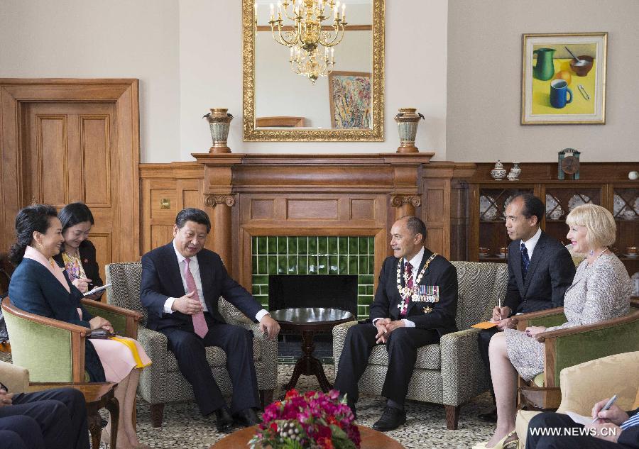 Chinese President Xi Jinping (3rd L) meets with New Zealand Governor-General Jerry Mateparae (3rd R) in Wellington, New Zealand, Nov. 20, 2014. (Xinhua/Li Xueren)