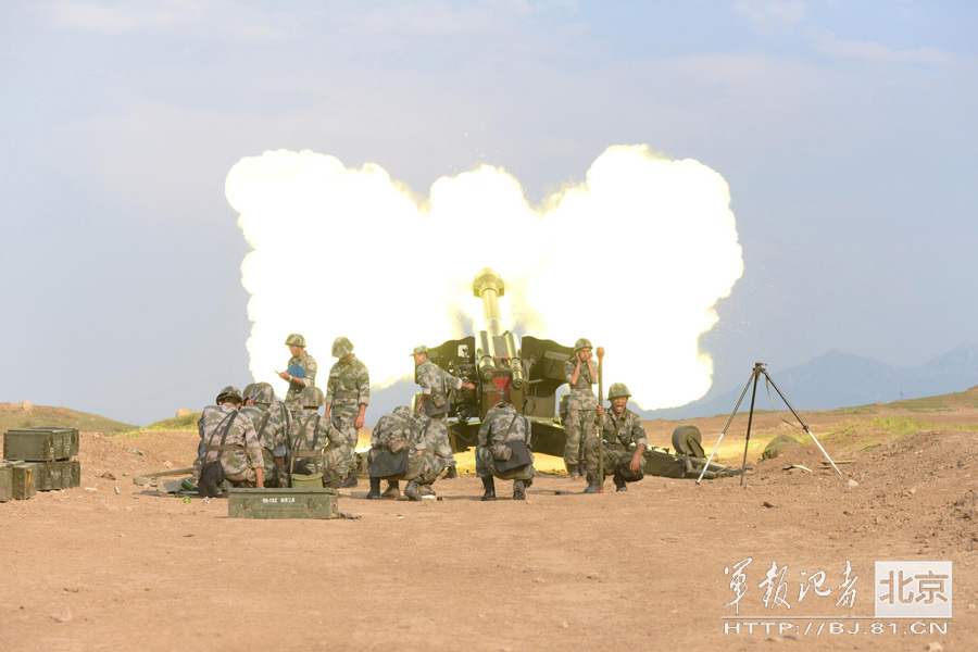 In this autumn, a field artillery brigade of the 27th Group Army of the PLA maneuvers from northwest China to the beach of the Bohai Sea to conduct a live-fire drill and successfully hit a dozen of mobile targets on the sea. (BJ.81.cn/Chang Tianlong)