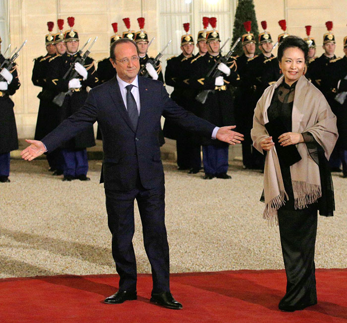 French President Francois Hollande and Peng Liyuan. (Photo/ forum.china.com.cn)