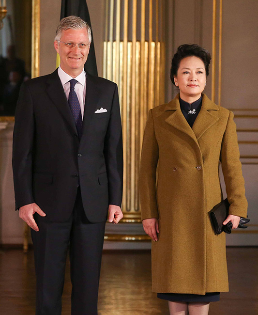 King Philippe of Belgium takes photos with Peng Liyuan. (Photo/ forum.china.com.cn)