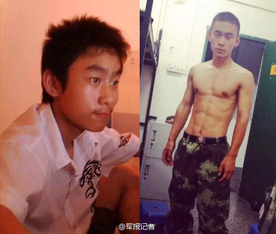 A group of photos released by the official microblog of the Liberation Army Daily show the changes of some Chinese young men after they joined the army, which has soon become a hit on Internet. Netizens commented that the life in the army has transformed the 'street boys' to true men. (Photo/Microblog of Liberation Army Daily)