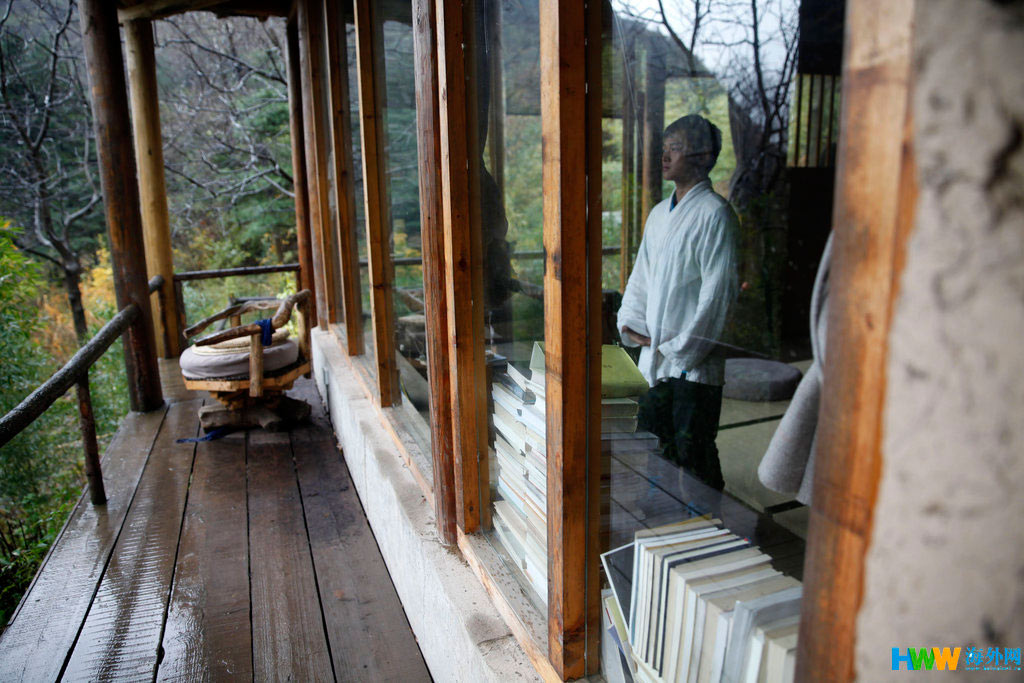 A hermit practices in the thatched house. (Photo/haiwainet.cn)