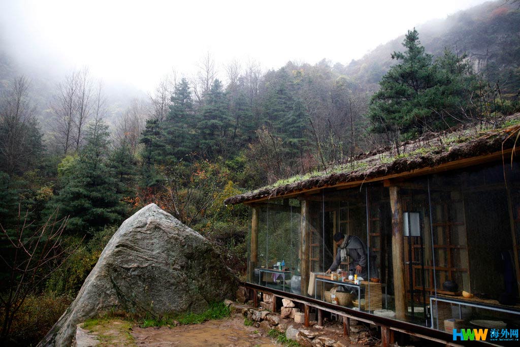 Liu Jingchong works in the thatched house. (Photo/haiwainet.cn)
