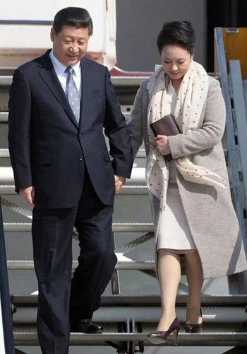 Xi arrives in Germany for a state visit with Peng on March 29, 2014.