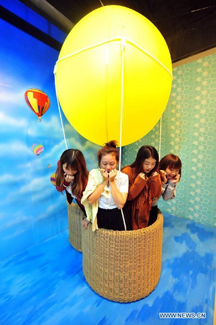 Visitors pose for photos at Magic Art Museum in Bangkok, Thailand, Nov. 24, 2014. The Magic Art Museum Bangkok presents modern 3D art works. (Xinhua/Rachen Sageamsak)
