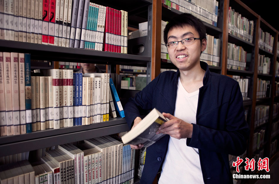 Shi Hao is a post-80s writer in Beijing. He always stays late until 3 a.m. and reads in libraries at weekends. (CNS/Zhai Lu)