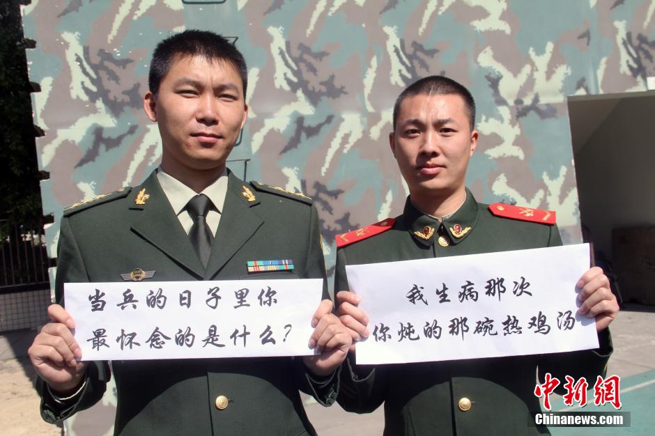 "What you missed most in you army life?" "I never forget the chicken soup that you made for me when I was ill." (CNS/Wang Jiao)