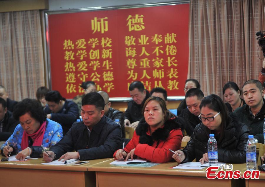 Students join a theory lesson offered by the Chongqing Hotpot Academy in Chongqing municipality on November 25, 2014. [Photo: China News Service/ Chen Chao]