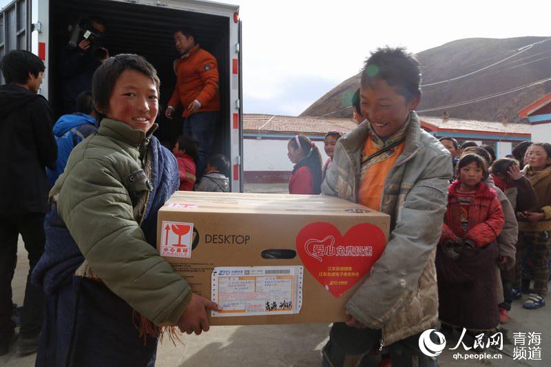 Children are excited to get their clothes. (Photo/qh.people.cn)