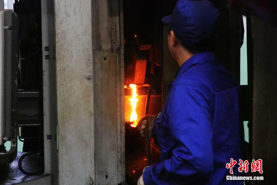 A worker works in Xiangtang welding workshop. (CNS/Zhang Weidong)