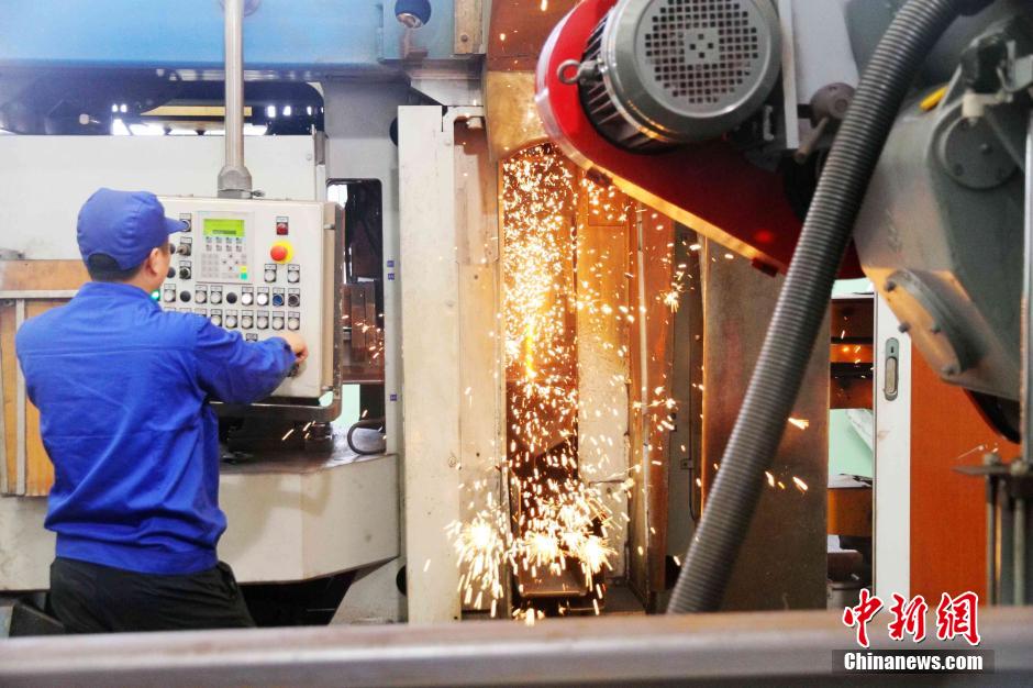 A worker works in Xiangtang welding workshop. (CNS/Zhang Weidong)