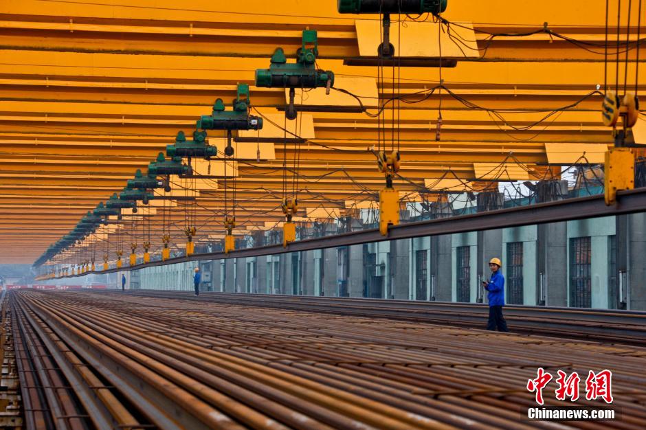 Five 100-meter-long tracks will be firstly joined to form a 500-meter-long track through welding, and then workers will transport these longer tracks to the construction site and weld them to a seamless track lying along the rail line.