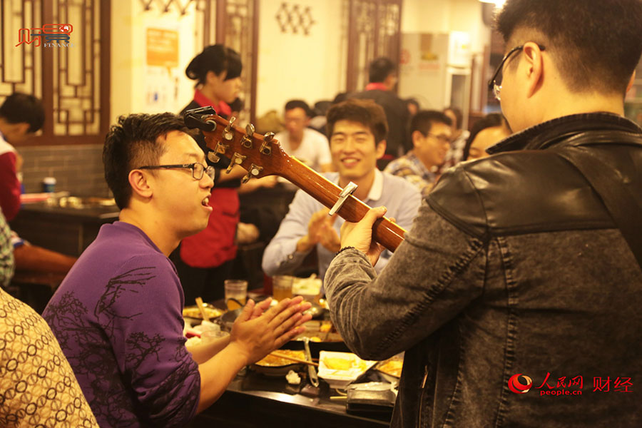 Hei Zipei gives performance to youth who have meals in Guijie. (Photo/finance.people.com.cn)