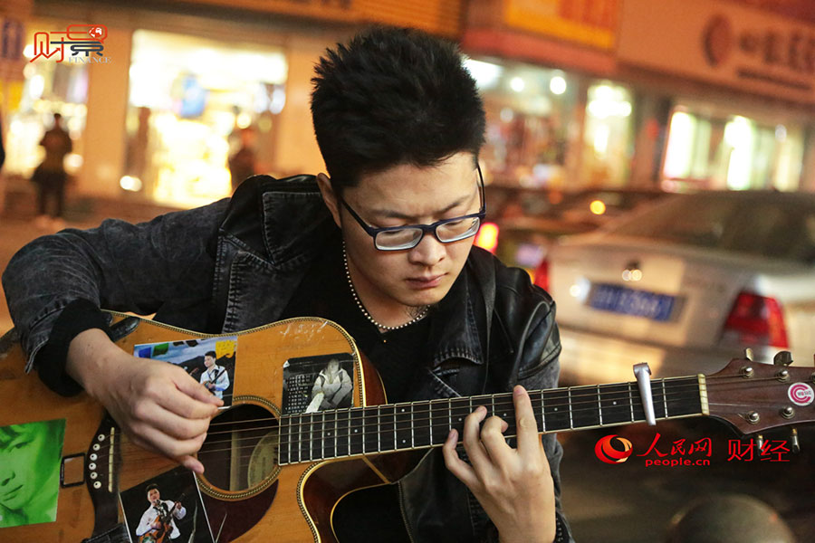 Hei Zipei plays his beloved guitar. (Photo/finance.people.com.cn)