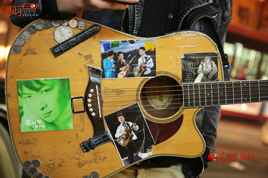 Acclaimed rock singer Xu Wei gave the guitar to Hei Zipei. (Photo/finance.people.com.cn)