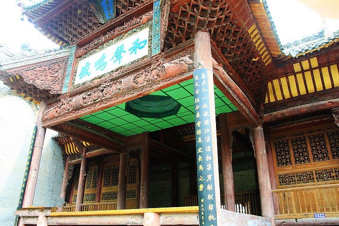 The wood structural temple faces the River Dan in the south. In China, only two playhouses are named with flowery. One is the South Playhouse in Bozhou, Anhui province. The other is Danfeng Flowery playhouse also known as North Playhouse. The beauty of Danfeng Flowery Playhouse mainly shows in its overall architecture being enveloped in a mix of drawing and dedicate carves on it.