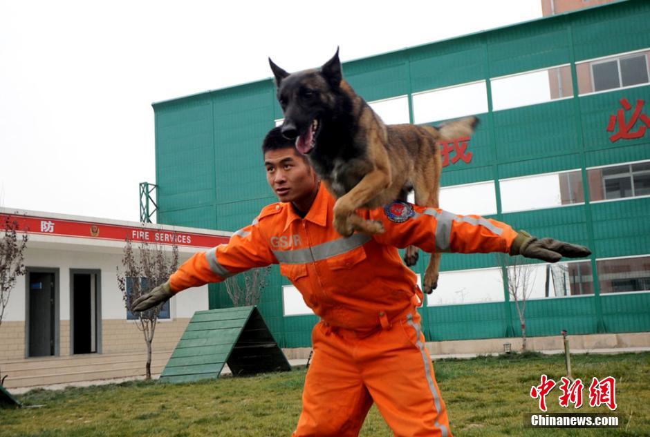 The fireman and his rescue dogs. (CNS/Shi Yonghong)